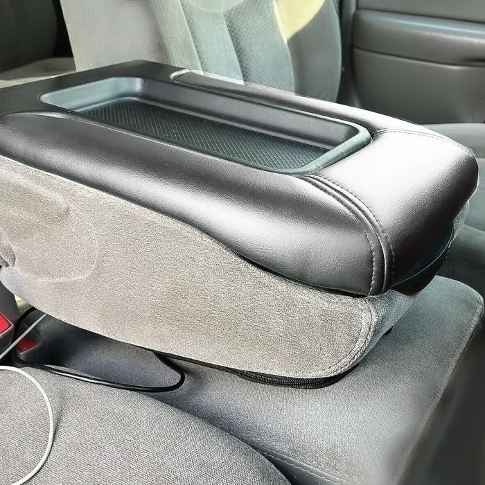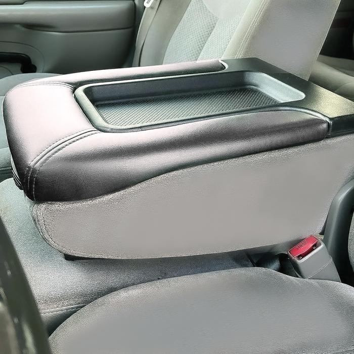 Reproduction center console lid for various 2003-07 Chevrolet, GMC, and Cadillac models. Manufactured in urethane and ABS materials, each lid is a bolt-on solution to your worn, broken, cracked, torn, or discolored original console lid. Features a dark pewter gray PVC leather grain upholstered cover to match a variety of interior colors.