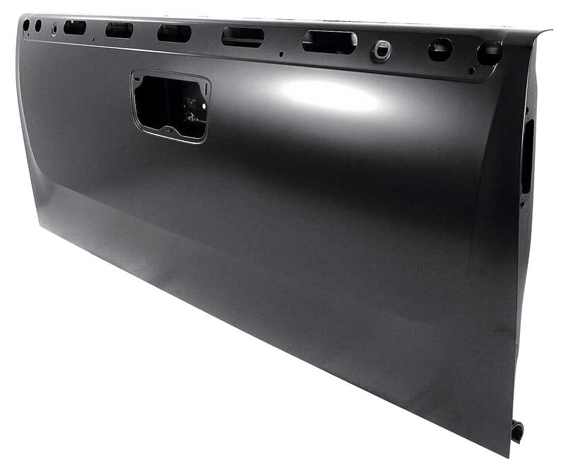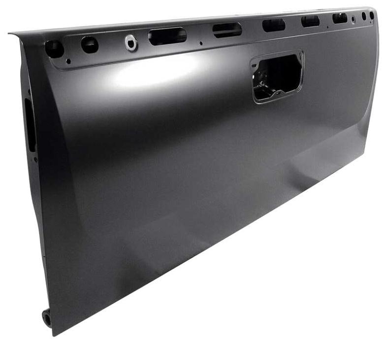 Reproduction tailgate shell for 2007-2013 Chevrolet Silverado and GMC Sierra models. Each tailgate shell is manufactured in stamped steel to OEM specifications, ensuring an original appearance and fit. This tailgate is the outer shell only. The handle, latch, rod, hinge, cable and other accessories are not included, and must be removed from the old tailgate and reinstalled on the new tailgate shell or can be purchased separately.