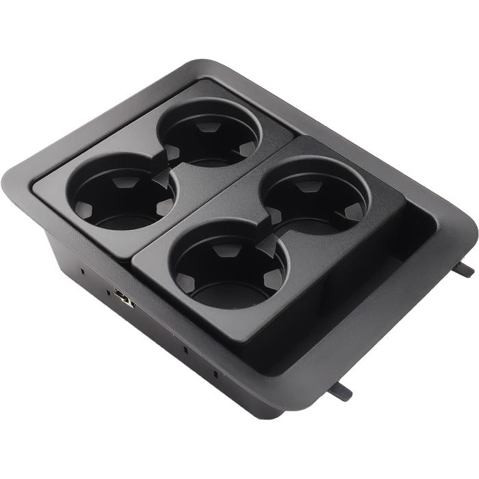 Reproduction center console tray with drinkholder insert for securing 4 drinks. Manufactured in injection-molded ABS material, as original, this replacement tray is the answer to freshening up the center console in your 2007-14 GMT900 series, Chevrolet or GMC pickup, Suburban, Tahoe, or Yukon. Fits in place on models equipped with the full center floor console with the black factory installed ABS tray and drink holder insert. Holds 4 drinks. Installs as original.