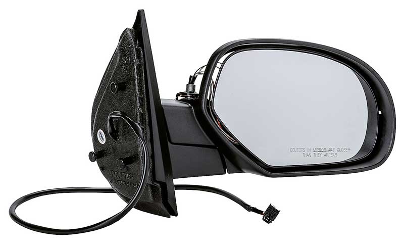 Reproduction heated power remote exterior side view mirror designed for 2007-2014 Chevrolet and GMC GMT900 Series pickup and SUV models. Each mirror is built to OEM specifications, ensuring factory-quality fitment and performance. Features integrated heating elements that help eliminate fog, ice, and condensation for clear visibility in all weather conditions. Power remote adjustment allows convenient operation from inside the vehicle. Supplied in black primer finish, ready to prep and paint to match the vehicle's exterior. Fits models with a 10-head, 5-pin connector. Replaces OE part number #20809968.