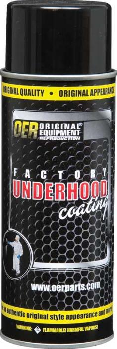 OER® Underhood Detail Paint is a durable underhood coating used for detailing underhood items like hood hinges, safety and hood latch assembly, carburetors, pulleys, accelerator and transmission linkage, nuts, bolts, brackets,clips, screws and more. Comes in a 16 Oz. Aerosol Can (Net Wt. 12 Oz.).