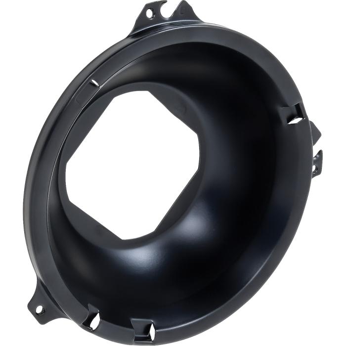 Reproduction of the original "square-hole" style mounting bucket designed for use on various 1958-82 GM models. The mounting bucket is designed to allow adjustment of the headlight beam on various 5-3/4" round quad headlamp equipped models. This headlamp bucket is attached to the vehicle using adjustment screws and nut assemblies. Features 3-tabs to secure the 3-tab headlight trim ring to the bucket. Replaces GM part #'s 5950507.