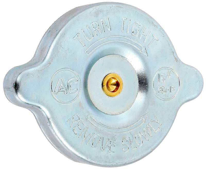 Authentic reproduction of the original radiator cap designed for the enthusiast who wants total originality. Each radiator cap is manufactured to OE specifications ensuring a perfect fit and appearance. Features the correct cap rating along with correct factory markings including "TURN TIGHT - REMOVE SLOWLY", "AC" and "RC15" in the correct size and font. The original GM cap has been long discontinued and the current GM replacement and other reproduction caps do not accurately represent the original cap.