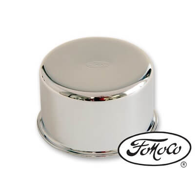 This chrome push-on style oil cap is a correct-style reproduction and features the 'FoMoCo' logo stamped on the top. Simply push onto your valve cover oil fill tube for installation. An added feature this oil cap functions as a breather cap allowing it to be used on open-emission Mustangs. This oil cap will fit twist-on valve covers using adapter part # C5AZ-6A868-A.