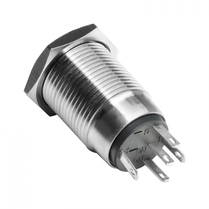 These Super-Clean flush buttons allow you to add a switch to your vehicles interior without compromising your automotive style. Available in a variety of colors these LED illuminated buttons feature a glowing ring to indicate power function. Heavy-Duty brass assembly has a durable nickel-plated finish. The metal housings have a definitive click you can feel when engaged. Mechanical Lifetime is tested at over 200,000 fail-free duty cycles! 16mm Diameter.