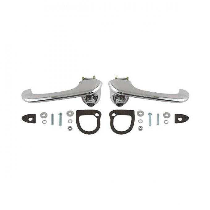 Quality reproduction and original Ford door handles feature a high quality triple chrome plating. Includes gaskets, door handle buttons sold separately. These are the best reproduction available. They are a perfect fit. Sold in pairs.