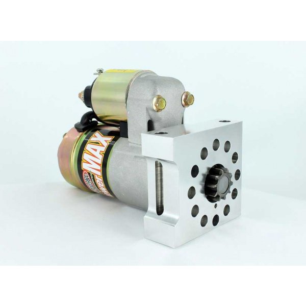 Light-Weight Permanent Magnet Design Provides Higher Cranking Torque With Low Amperage Draw For Engines Up To 10:1 Compression 1.2kw Starter Motor And 6:1 Planetary Gear Ratio 12 Clocking Positions To Clear Headers, Kick Out Oil Pans, Factory Cooling Lines, And More Powermaster?s newest addition to the LS starter line is their Powermax starter. With a light-weight permanent magnet design, provides higher cranking torque with low amperage draw for engines up to 10:1 compression. A 1.2kw starter motor and 6:1 planetary gear ratio result in a 7.5lb starter that packs a big punch in a small package. 12 clocking positions allow the already featherweight starter to fit in even more positions to clear headers, kick out oil pans, factory cooling lines, and more.