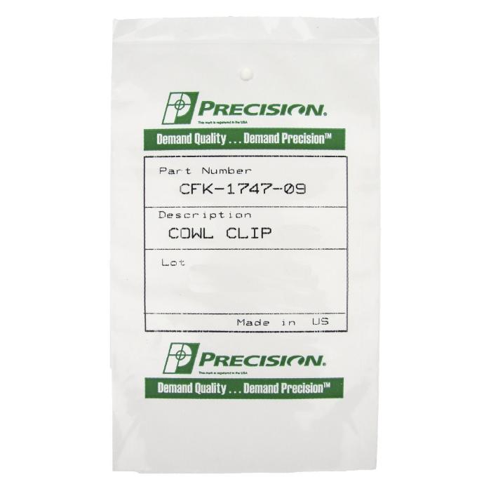 The Precision Cowl Fastener Clip Kit (6-piece, CFK-1747-09) provides reliable, OE-style replacement clips to secure cowl and lower windshield trim panels. These fasteners restore proper alignment, reduce panel vibration and wind noise, and protect underlying seals and bodywork from damage. Built for durability and repeated service, the kit is ideal for restoration projects, routine maintenance, or any application needing secure cowl panel retention.