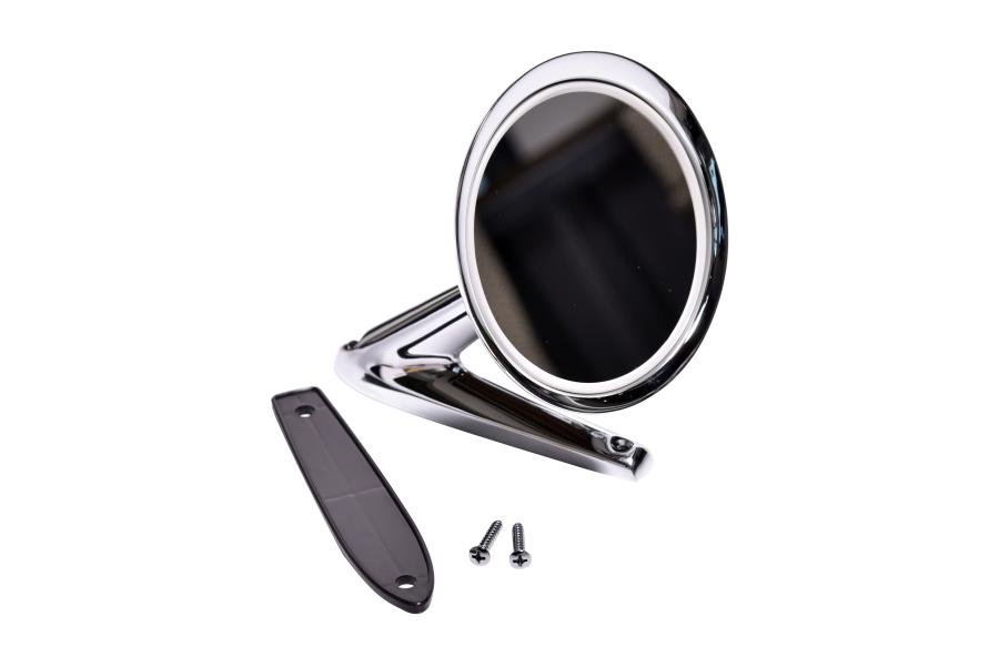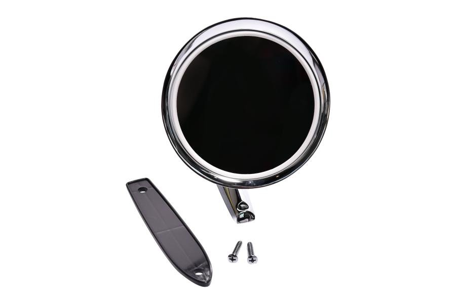 Includes Round mirror assembly, mounting base, door mount gasket, and attachment hardware