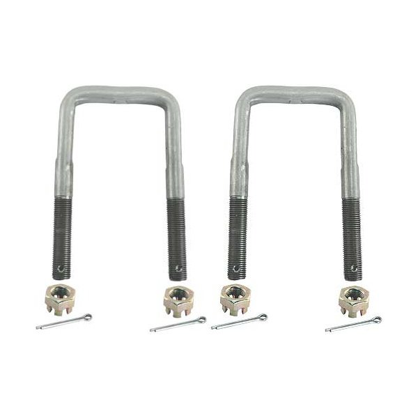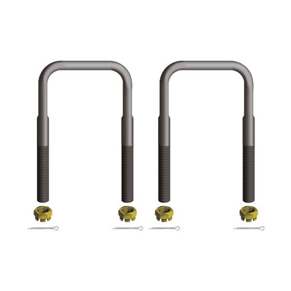 1 set does both sides. These U-bolts fit numerous applications and may be too long for some, but they can be trimmed and the cotter key hole re-drilled for a perfect fit.