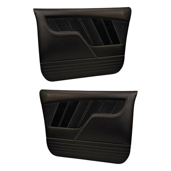 TMI Front Molded Door Panels, Sport-R Pattern 1967-1972 Chevrolet/GMC Truck/Blazer/Jimmy, Charcoal Black Verona Vinyl, Black Unisuede W/Gray Stitch 11-83013-6525-99-GS