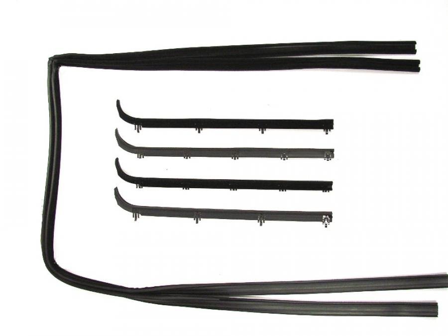 - Complete 6-piece kit includes left and right beltline moldings and matching glass run channels.