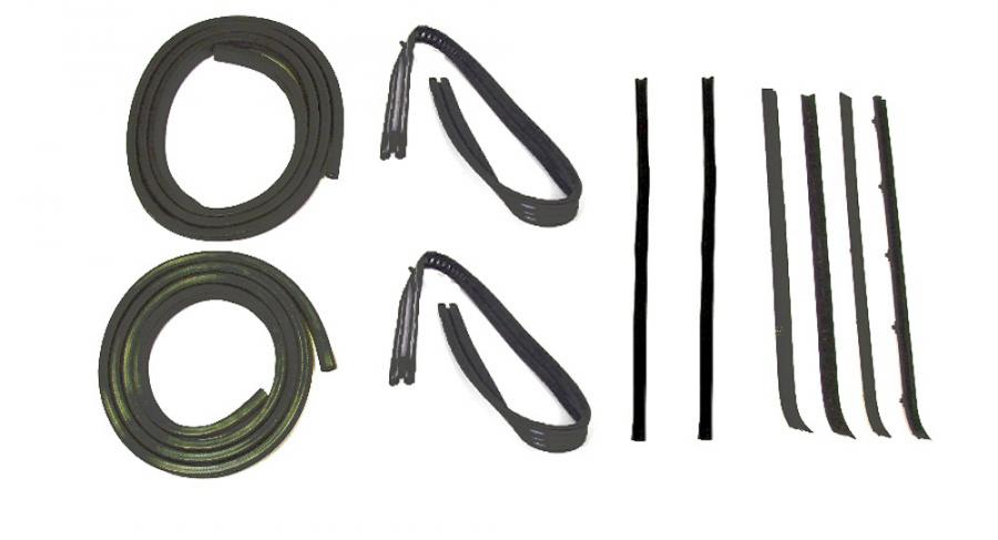 - Complete 10-piece kit includes left and right glassruns, beltlines and door seals for full door assembly replacement.